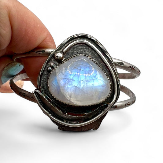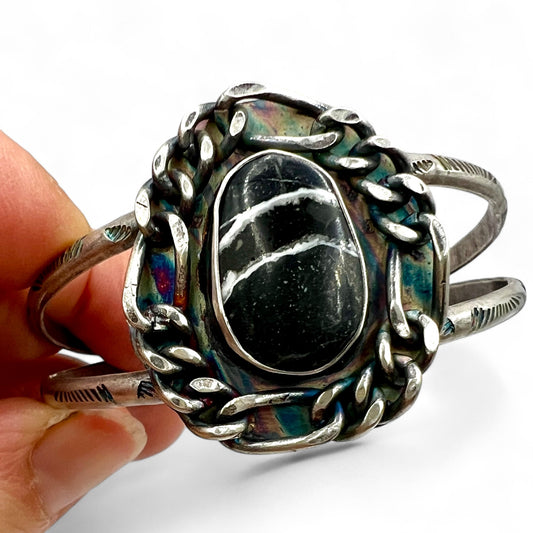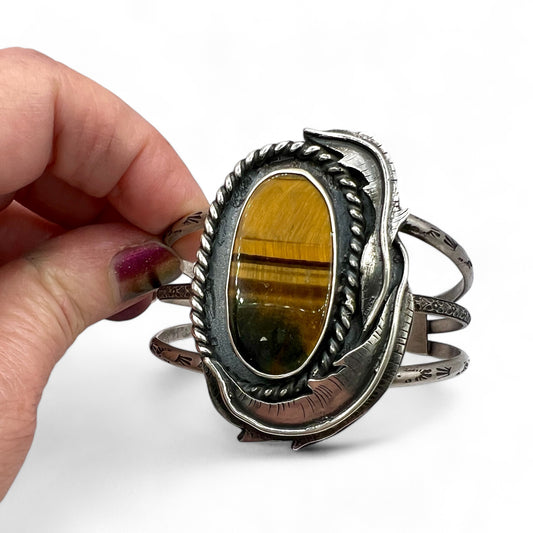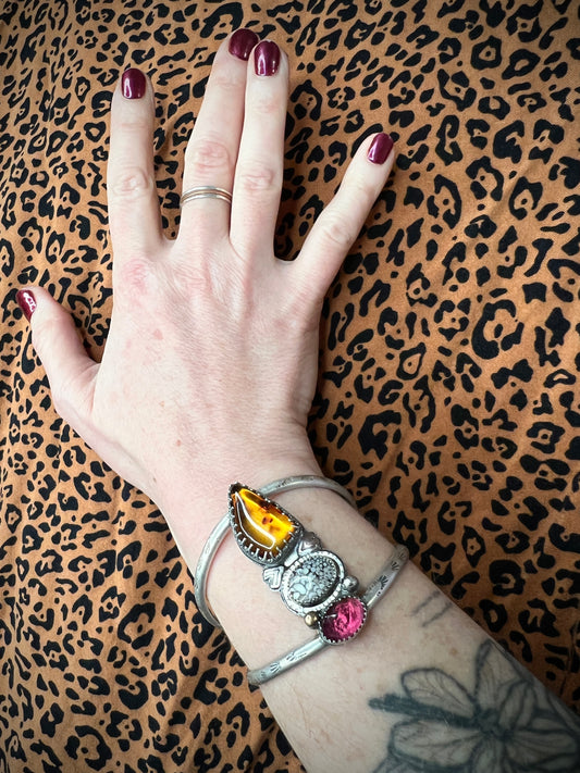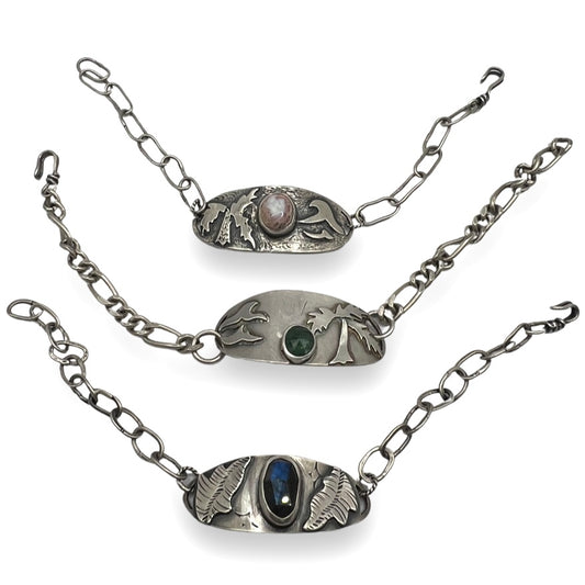 One of a kind soldered, stamped and sawed cuff bracelets made with love, sterling and / or brass, accented with a beautiful stone.