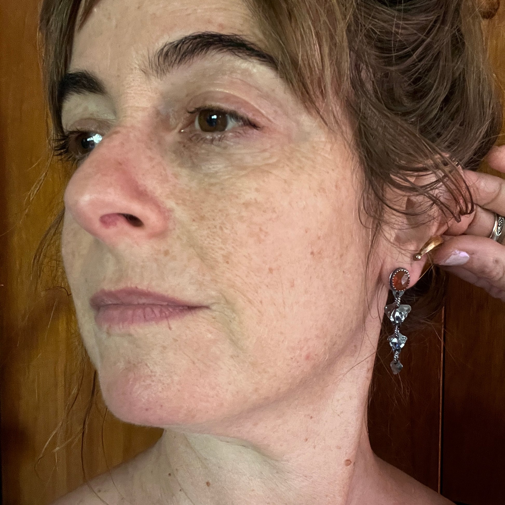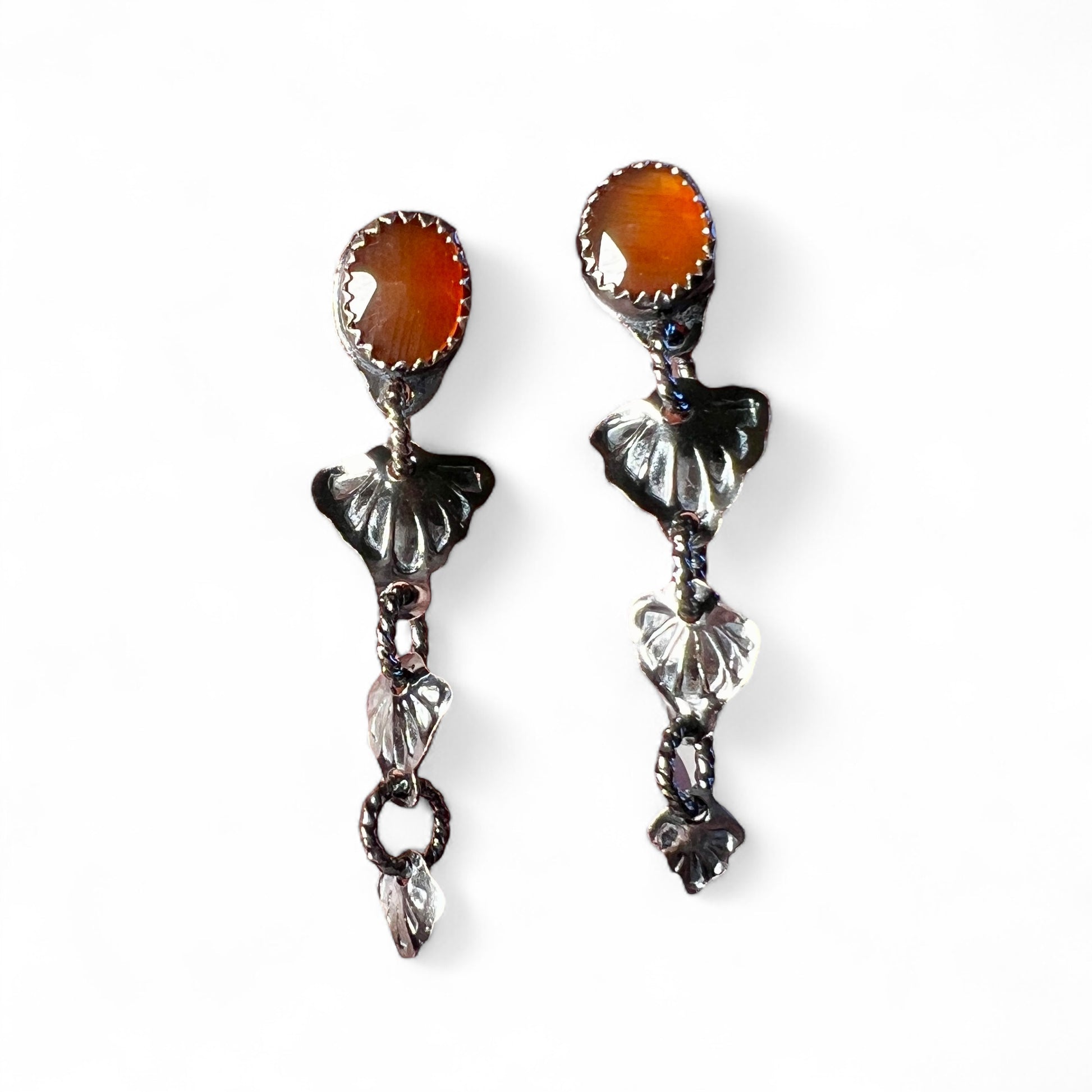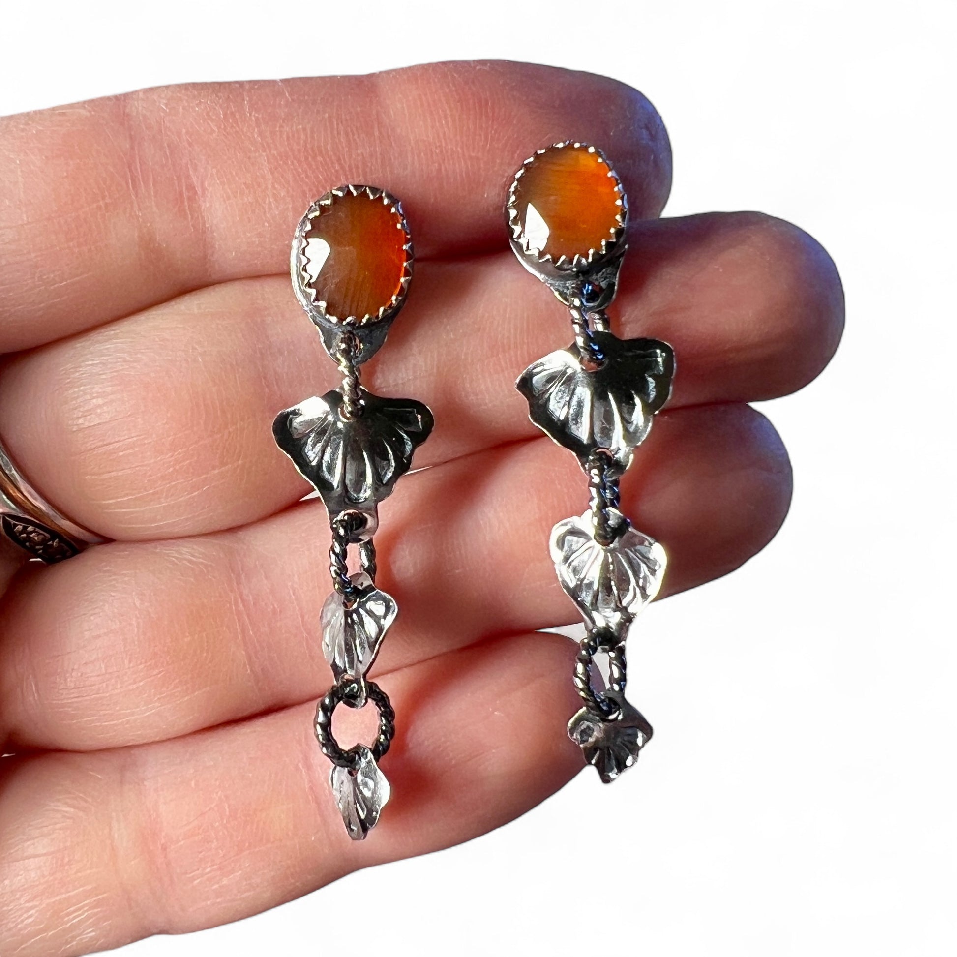 One of a kind, handcrafted, sterling silver stud earrings with ethically sourced, faceted, bright orange carnelian stones.