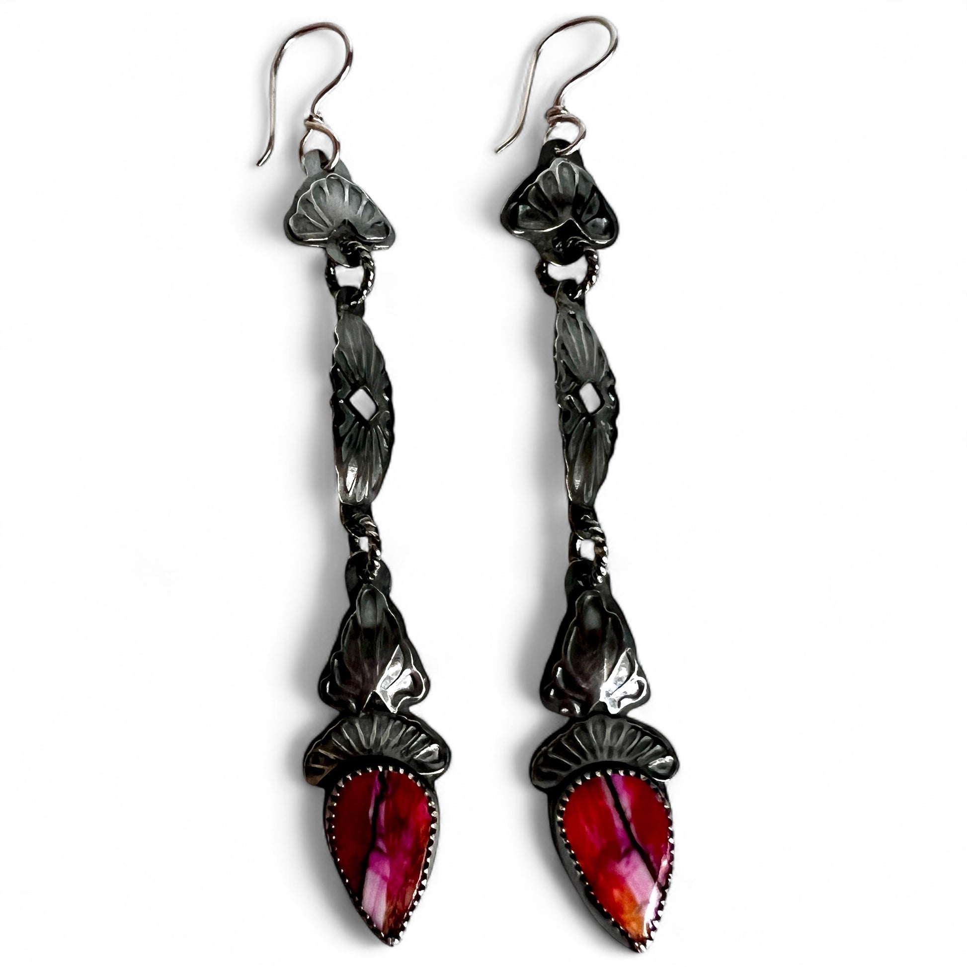 I stamped, sawed & soldered little flourishes together & attached them with jump rings for flowy movement.