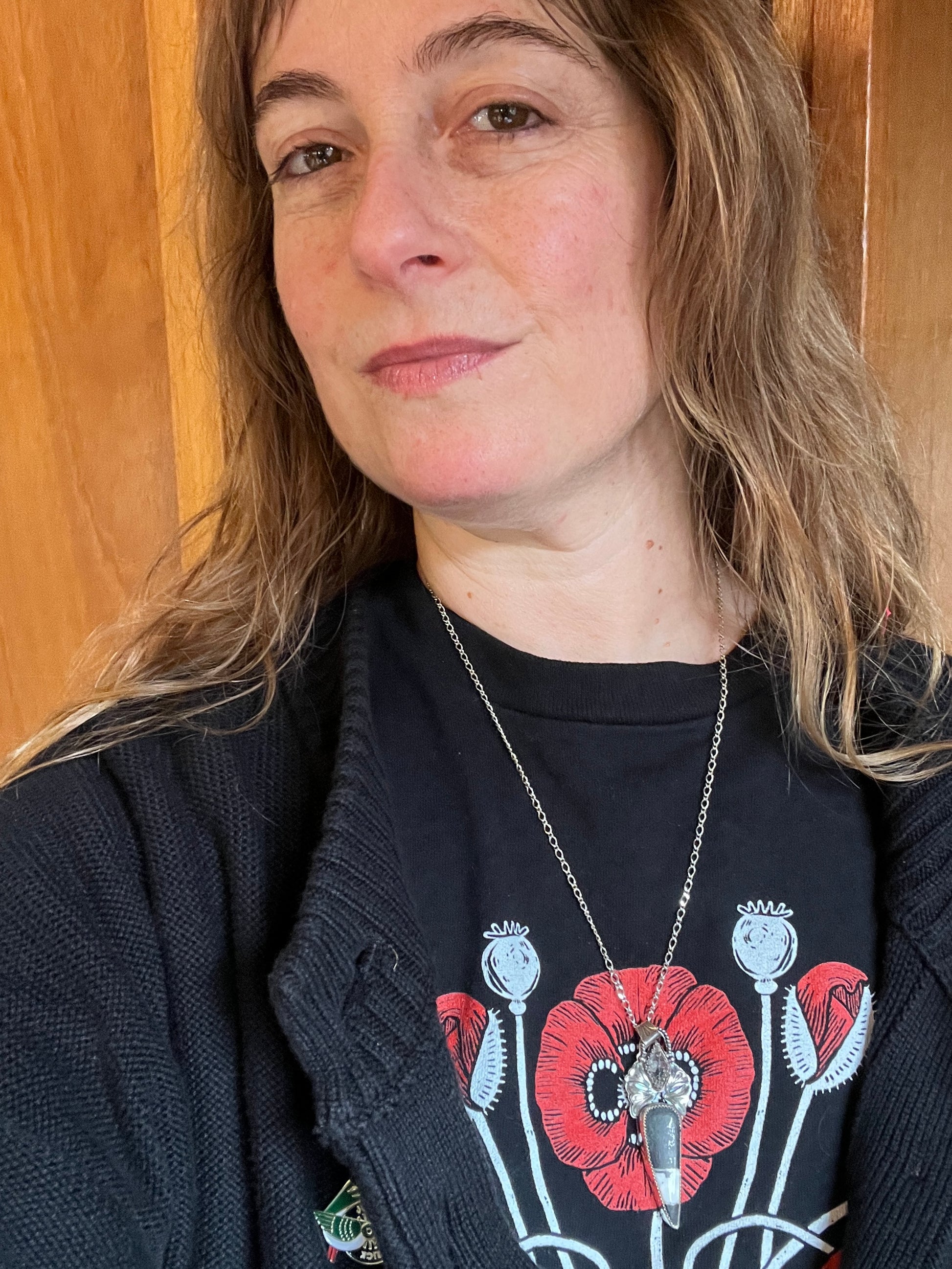 I used 2 stones in the pendant: a herkimer that’s sawed in 1/2, with the back sawed out you can hold it up to the sun! Thw diamond is from upstate NY.