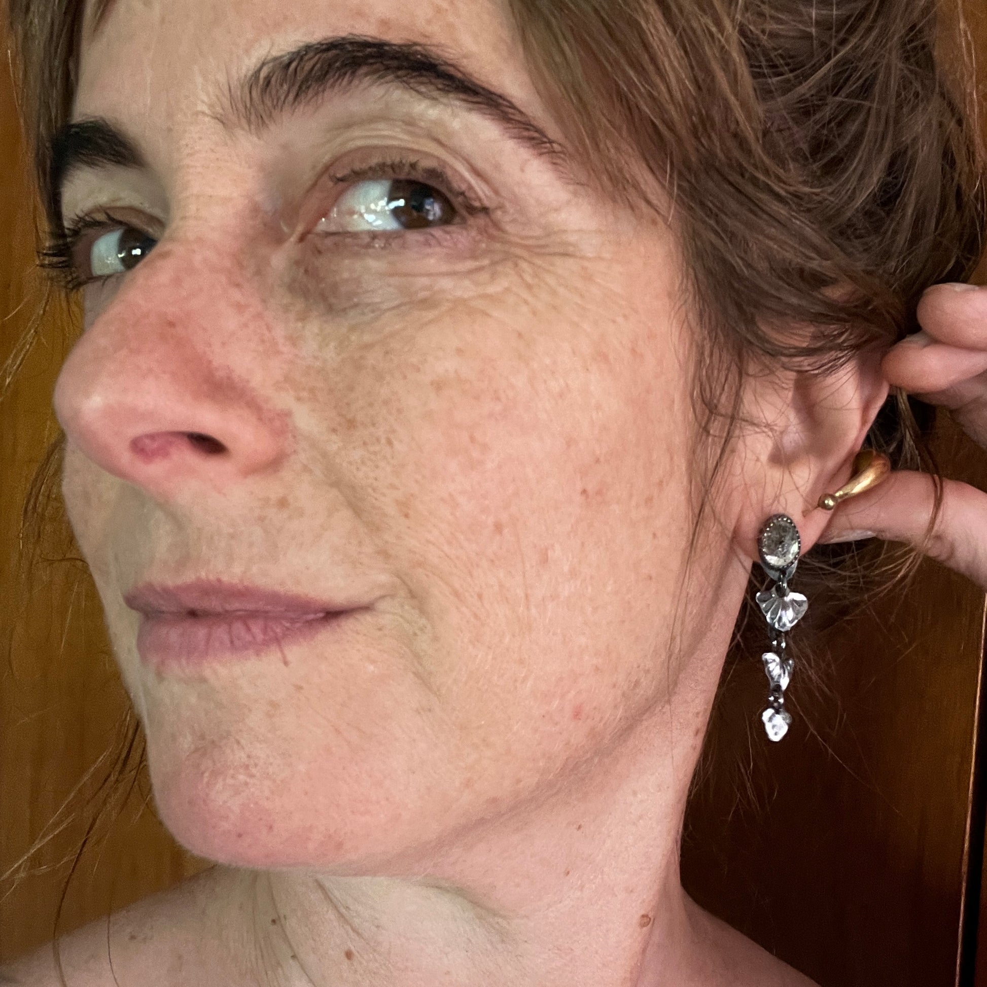 One of a kind, handcrafted, sterling silver stud earrings with ethically sourced, faceted,  Herkimer diamond stones.