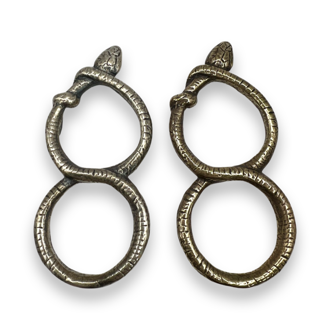 Lost wax cast snakes! In choices of sterling silver & brass.
