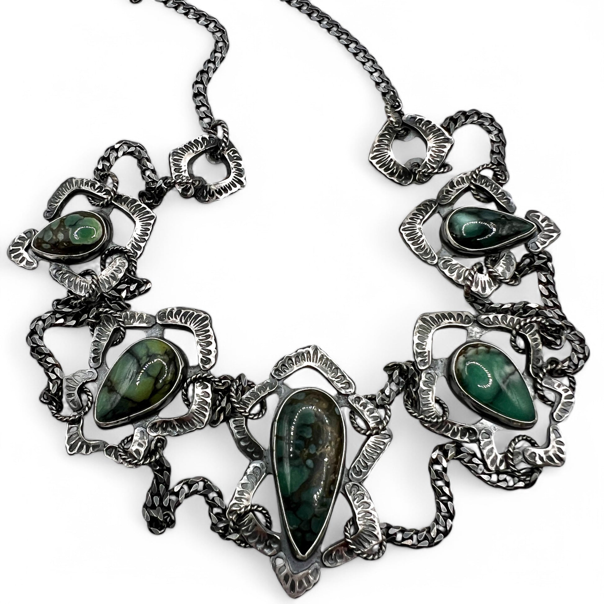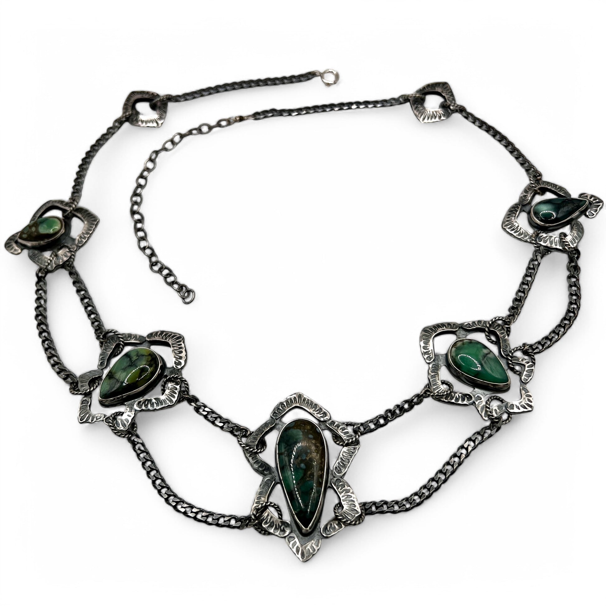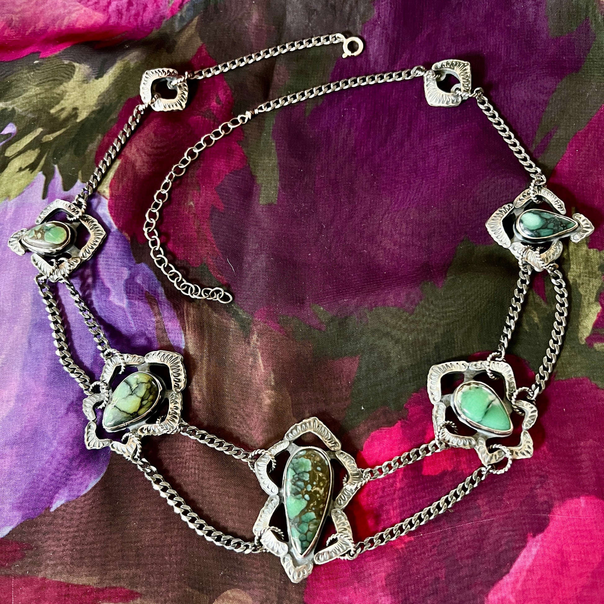One of a kind, handcrafted adjustable necklace with a the right amount of thick Italian chain & absolutely GORGEOUS Starfox Variscite that I picked up directly from the miner & cutter who owns the mine!