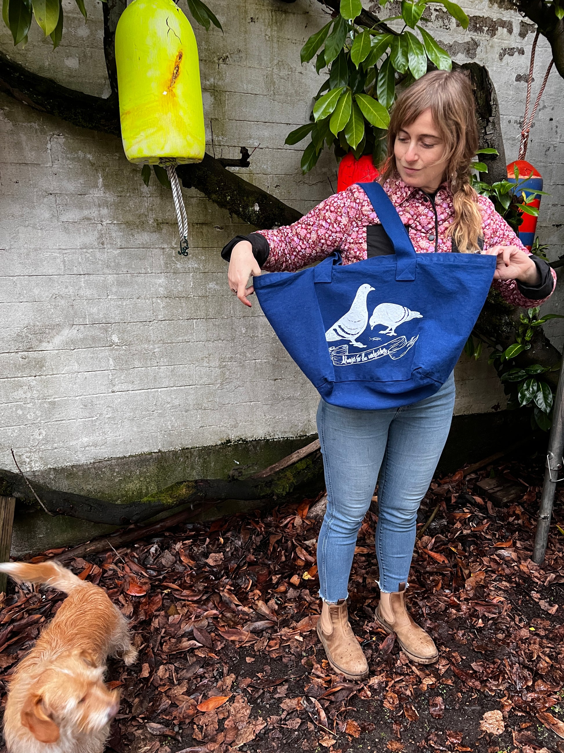 This is a limited edition, 100% denim cotton of the loveliest blue! The bag was sewn domestically (see more info below), & printed here in Portland Oregon.