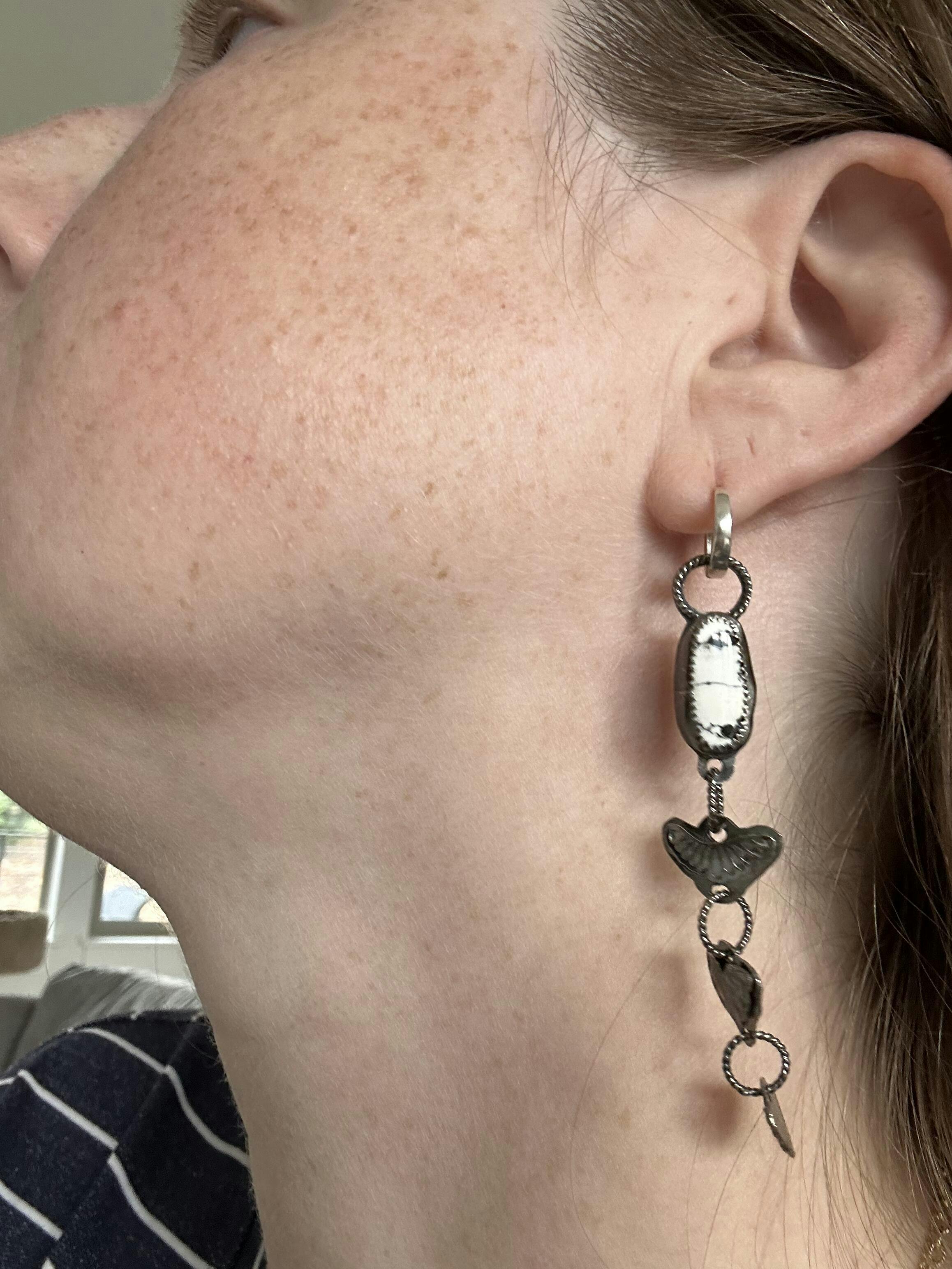White Buffalo Turquoise Huggie Hoop Cascade Earrings